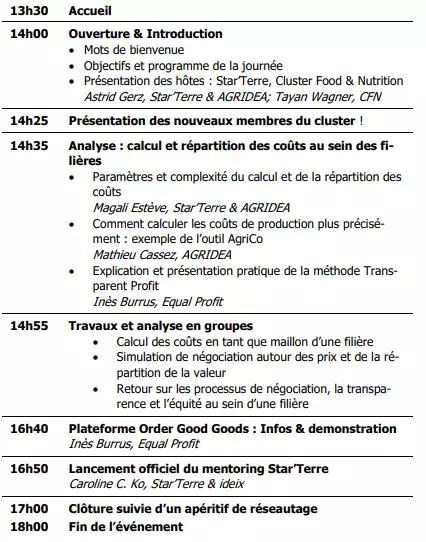 Cet événement, s'inscrivant dans notre thématique clé 2024 sur la répartition de la valeur dans les chaînes d'approvisionnement agroalimentaires, permettra aux participants de:
